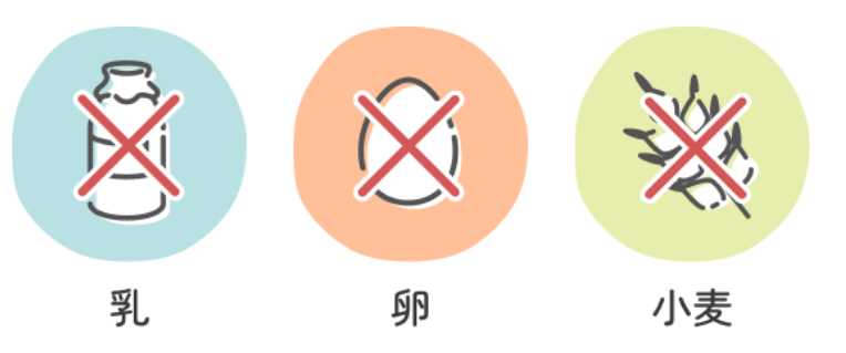 3大アレルゲンの乳・卵・小麦を使用していません。