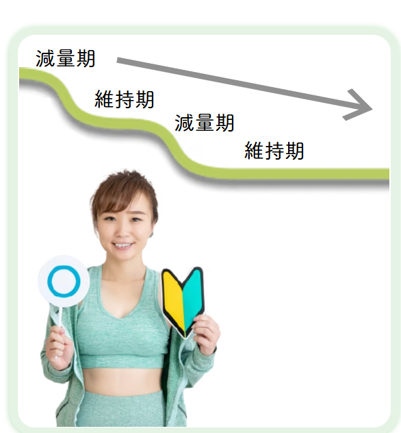 一定期間をかけて、「減量期」+「維持期」を繰り返し行い、脳に標準ボディとして定着させる。