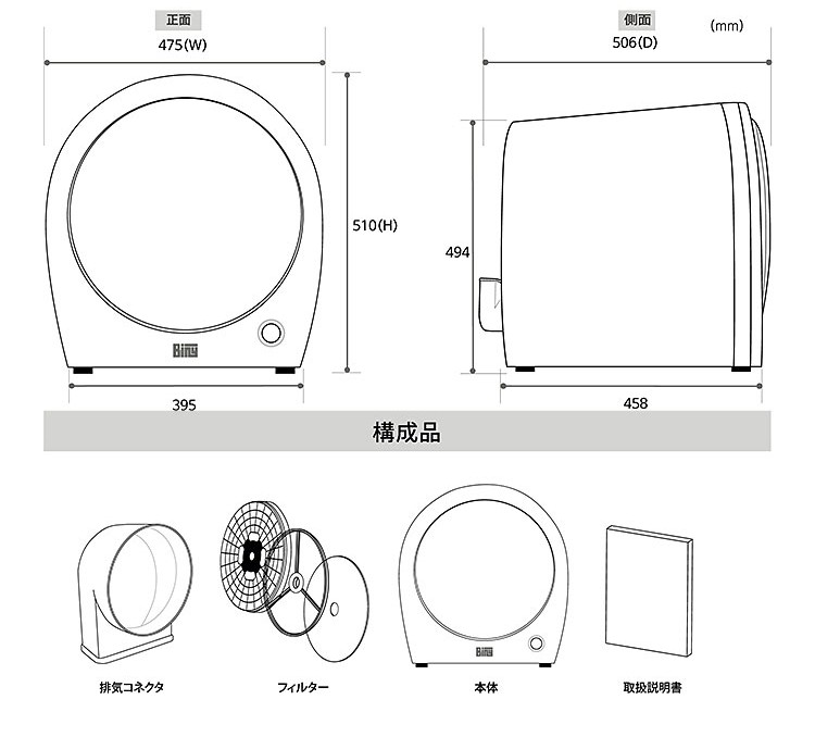 | サイズ | 幅475×奥行506×高さ510(㎜) |