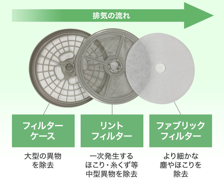 ビニーはほこりや糸くずなどの汚れもしっかりブロックしてくれるフィルターがつけられています。